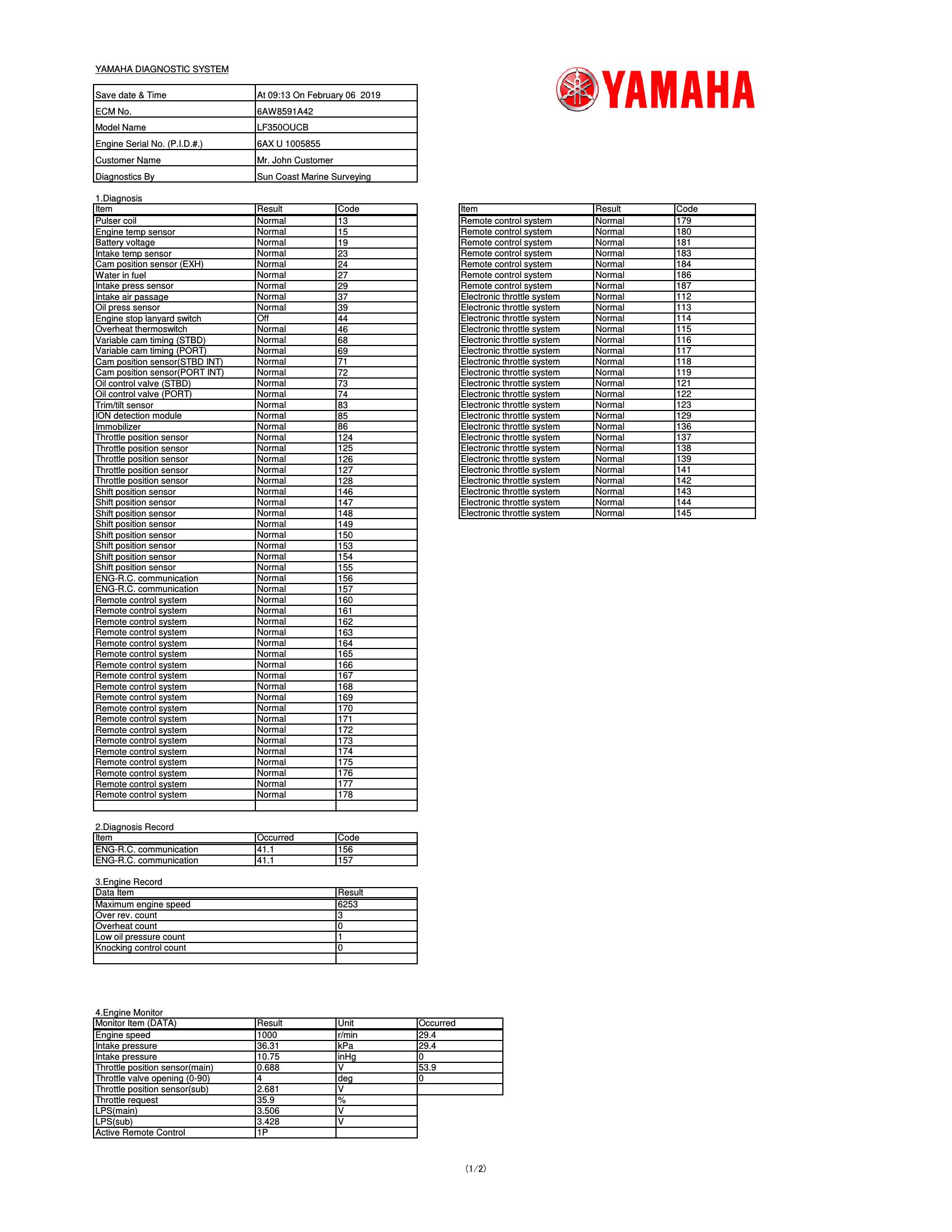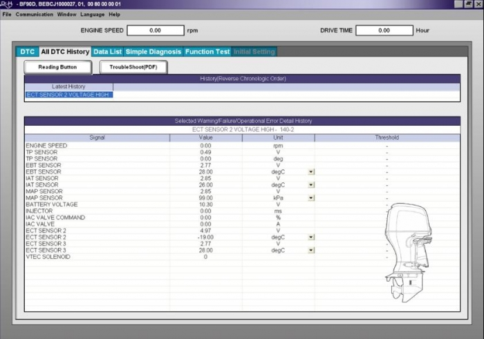 Outboard Engine Diagnostics Screen Shots