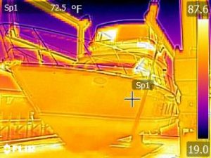 Every object gives off some amount of thermal radiation so thermal imaging is ideal for observing temperature anomalies that are abnormal in machinery, electrical equipment, and even solids such as wood, fiberglass, aluminum, and steel. Thermal imaging does not require light to see thermal radiation (like you would see in night vision cameras which require some amount of light) so thermal cameras can see in absolute darkness. Thermal imaging is used widely in other industries for maintenance and pre-failure inspections of machinery. Although somewhat new technology in marine surveying, thermal imaging is used extensively in the surveying of commercial aircraft hulls and systems. At Sun Coast Marine Surveying we want to insure our surveyors have the best technology available for our customers.