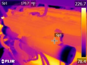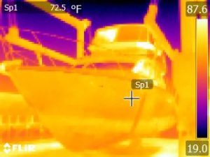 As you can see in the photos above, thermography can make your vessel (or prospective vessel) a safer investment. Thermography can sense the heat that may prevent an electrical fire. Thermal imaging can detect leaking fuel or water from tanks that may prevent an explosion or water damage to the interior of the vessel. Thermal imaging can detect temperature anomalies in the engines or transmissions that can prevent much more costly engine or transmission repairs later on.